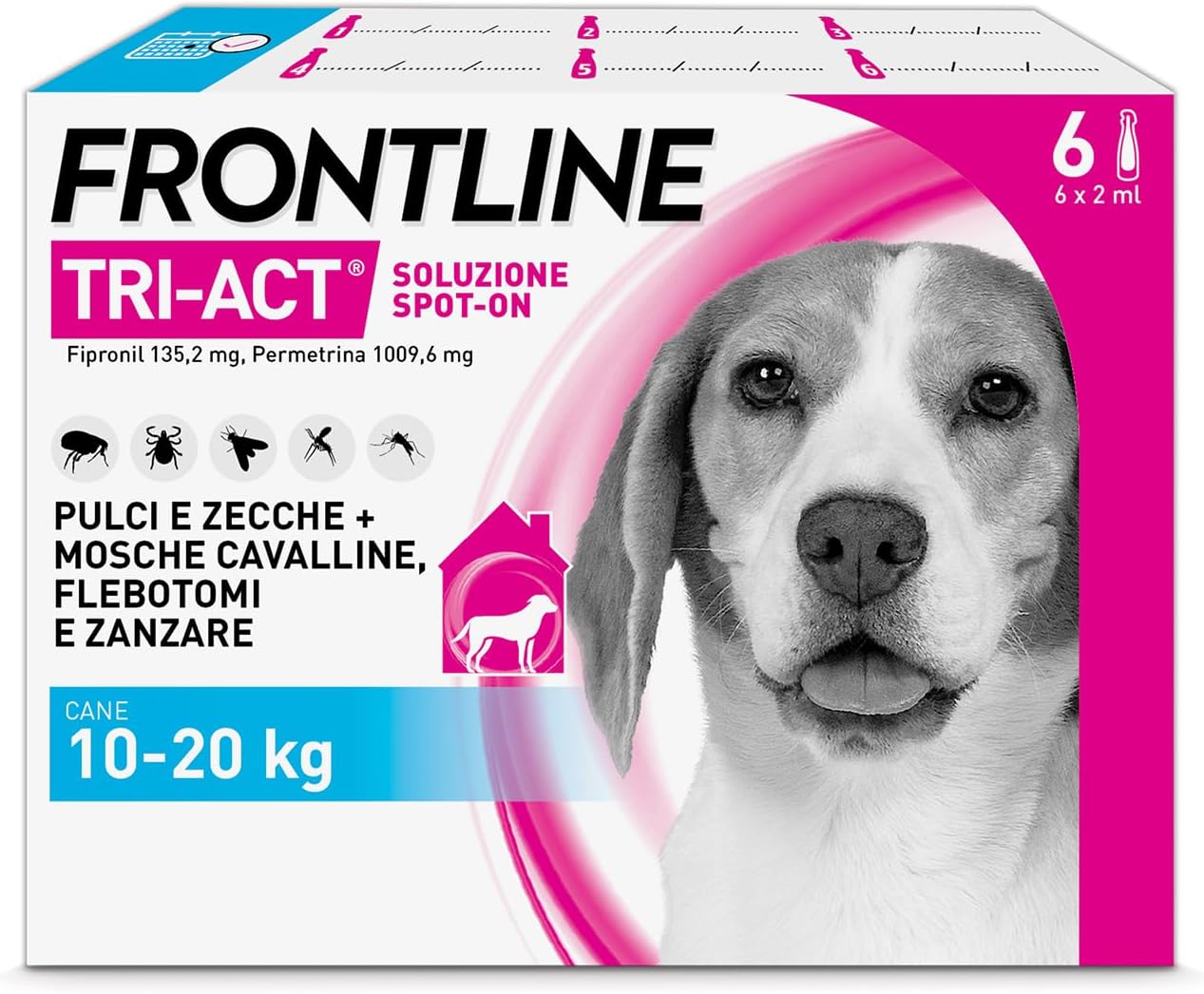 Scopri FRONTLINE Triact, 6 Pipette, Cane M (10-20Kg): protezione completa contro pulci e zecche per il tuo cane, fino a 4 settimane di tranquillità
